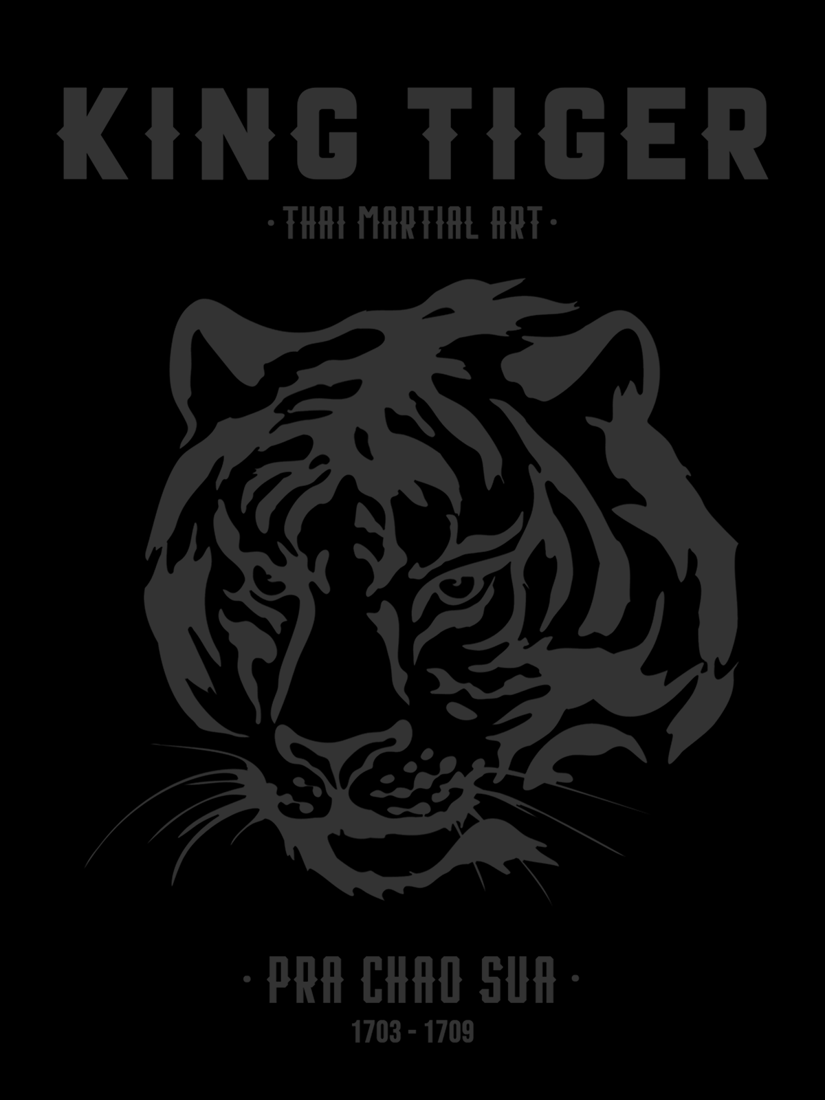 Pra Chao Sua, conhecido como o "Rei Tigre", foi um lendário monarca tailandês do século XVII que vagava disfarçado por seu reino, desafiando lutadores em disputas de muay thai e permanecendo invicto por sete anos. Sua paixão e habilidade no combate influenciaram profundamente o desenvolvimento do muay thai moderno. A estampa desta peça homenageia essa figura histórica, refletindo a coragem e a tradição que ele representava.