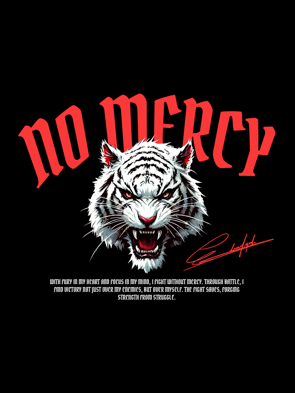 A arte traduz a essência do Tigre Branco selvagem, preciso e imponente. Cada traço reforça o olhar de quem não recua, de quem encara qualquer combate com frieza e autoridade. Essa estampa é pra quem entra no ringue ou na vida com a mesma postura: sem dó, sem freio e com garra.